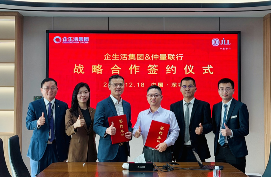 仲量联行华南区物业与资产管理部负责人陈绮琪、深圳物业与资产管理部市场拓展负责人门广迪,与企生活集团副总裁喻浩、资产运营中心副总经理周鹏等双方代表出席仪式并完成签约。