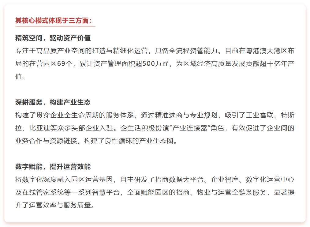 作为一家植根大湾区、专注于产业园区全周期运营的服务商,企生活集团始终秉持“让空间资产增值”的使命,致力于构建富有生命力的产业创新生态。