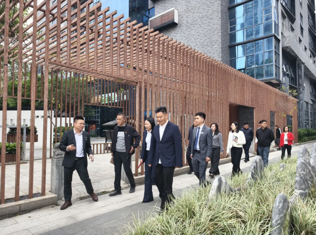 调研首站,付振邦书记一行实地走访企生活1970科技小镇,近距离感受园区旧改焕新成果与精细化运营实力。项目负责人详细讲解了小镇从老旧片区蜕变升级为优质产业载体的全过程,细致介绍园区规划布局、业态打造、物业服务体系及营商环境建设成效。付振邦书记对企生活推动城区旧改、焕新城市面貌的成果给予充分肯定,更高度赞誉园区规范高效的物业服务、优质舒心的营商环境,直言企生活用专业运营筑牢产业发展根基,尽显头部产业空间运营商的硬核实力与责任担当。